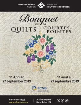 Join us at the New Brunswick Museum Exhibition Centre until September 27, 2019, to experience the beauty, skill, and pride of New Brunswick’s textile heritage. “Bouquet of Quilts” is a testament to the enduring power of quilting to connect us to our past, present, and future.